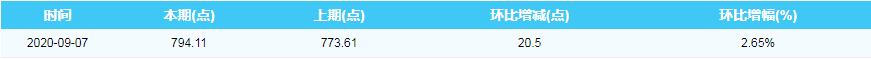 2020年9月7日中国沿海煤炭运价综合指数